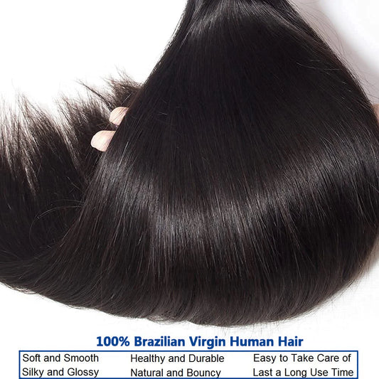 Brazilian Bone Straight Hair Bundles Double Weft Hair Bundles Natural Black 1/3/4 Bundles 100% Human Hair Extensions For Women