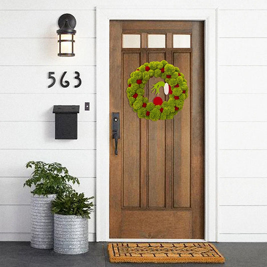 Christmas Wreath for Front Door Cartoon Green Monster Hand Wreath for Indoor Outdoor Porch Decoration