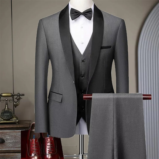 Suit (Blazer+ Vest + Pants) Men's Business Gentleman Fashion Slim Work Solid Color Plus Size Fair Dress Wedding Best Man Suits
