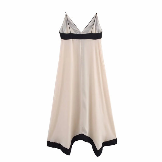 women's dress is fashionable casual lazy contrasting color V-neck slim suspender temperament summer new dress