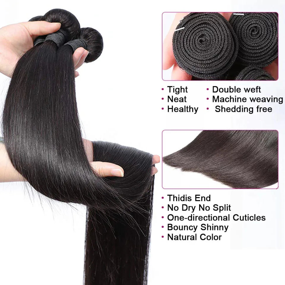 28 30 32 34 36 38 40 Inch Brazilian Hair Straight Hair Bundles 100% Natural Human Hair Bundles Double Wefts Remy Hair Extensions