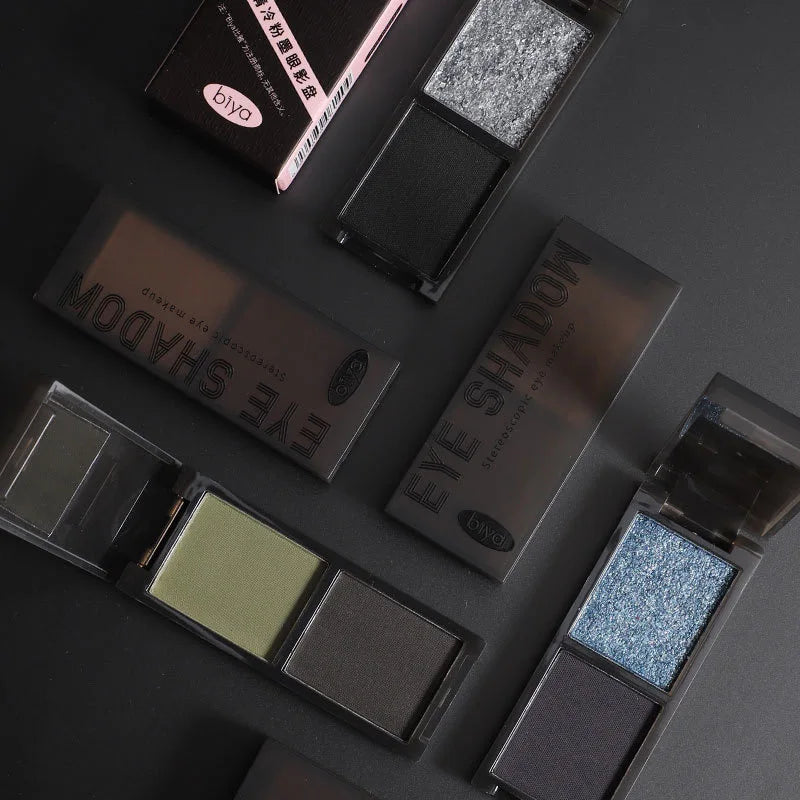 Biya 2 Color Eyeshadow Protable Red Black Plate Matte Eye Shadow Dark Smoky Cosmetics Makeup Party Halloween Diy Makeup