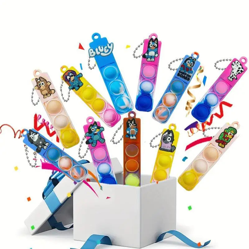 Bluey silicone round long bubble pendant silicone color decompression backpack pendant Bluey's friends keychain Halloween gift