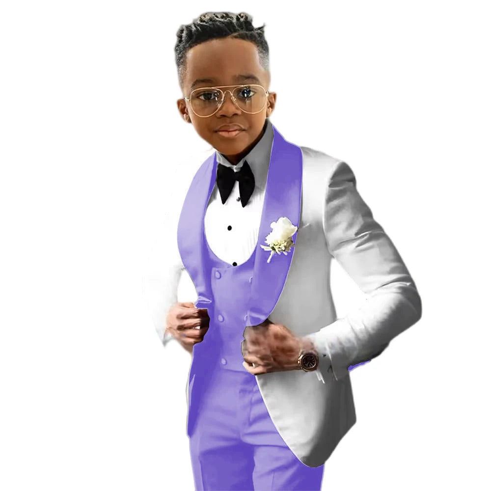 Boy Suits Costume 3 Pieces Child White Jacket Sets Black Vest Pant Flower Boys Formal Party Suit Kids Wedding Suit Tuxedo