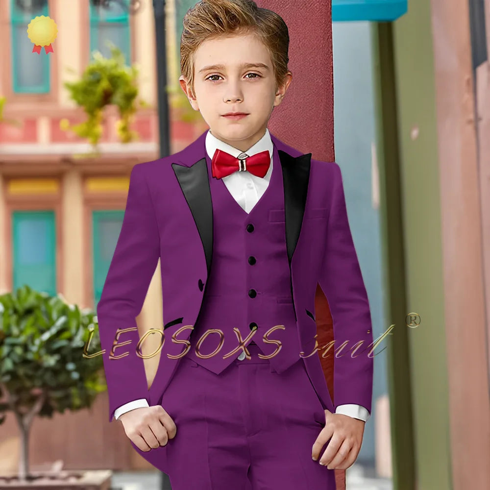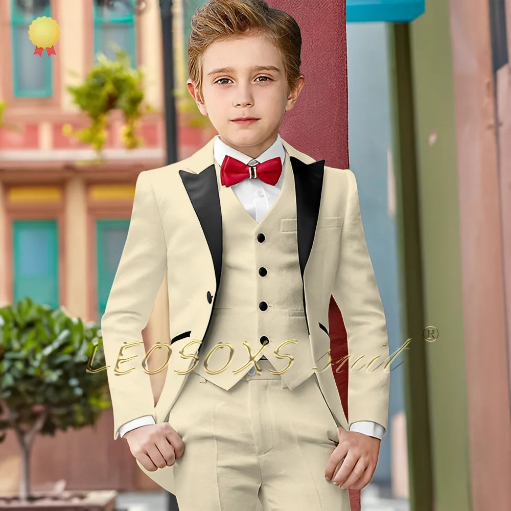 Boys Suit 3 Piece White Long Tuxedo Jacket Pants Vest Wedding Party Birthday Gift Kids Customized Blazer Suit
