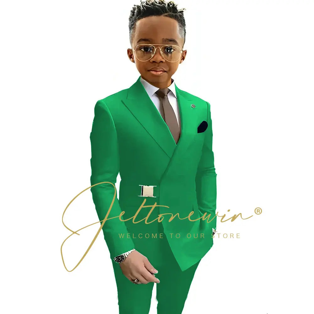 Boys Suit Fashion Wedding Tuxedos 2-piece Set Pointed Collar Jacket Double Breasted Blazer Pants for Party