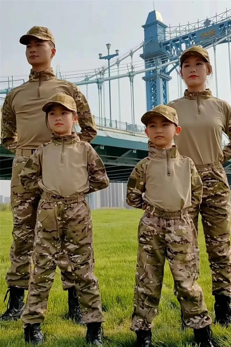 Boys Tactical Uniform Hunting Clothing Sets Children Airsoft Camouflage Suits Hiking Training Outdoor Parent-child