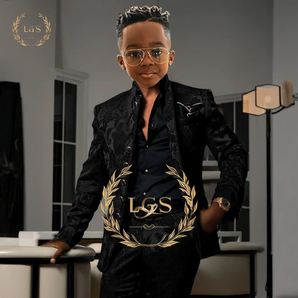Suit 2-Piece Set Boys Elegant Jacquard Blazer Outfit with Long Pants for Special Wedding Party and Show Hosting