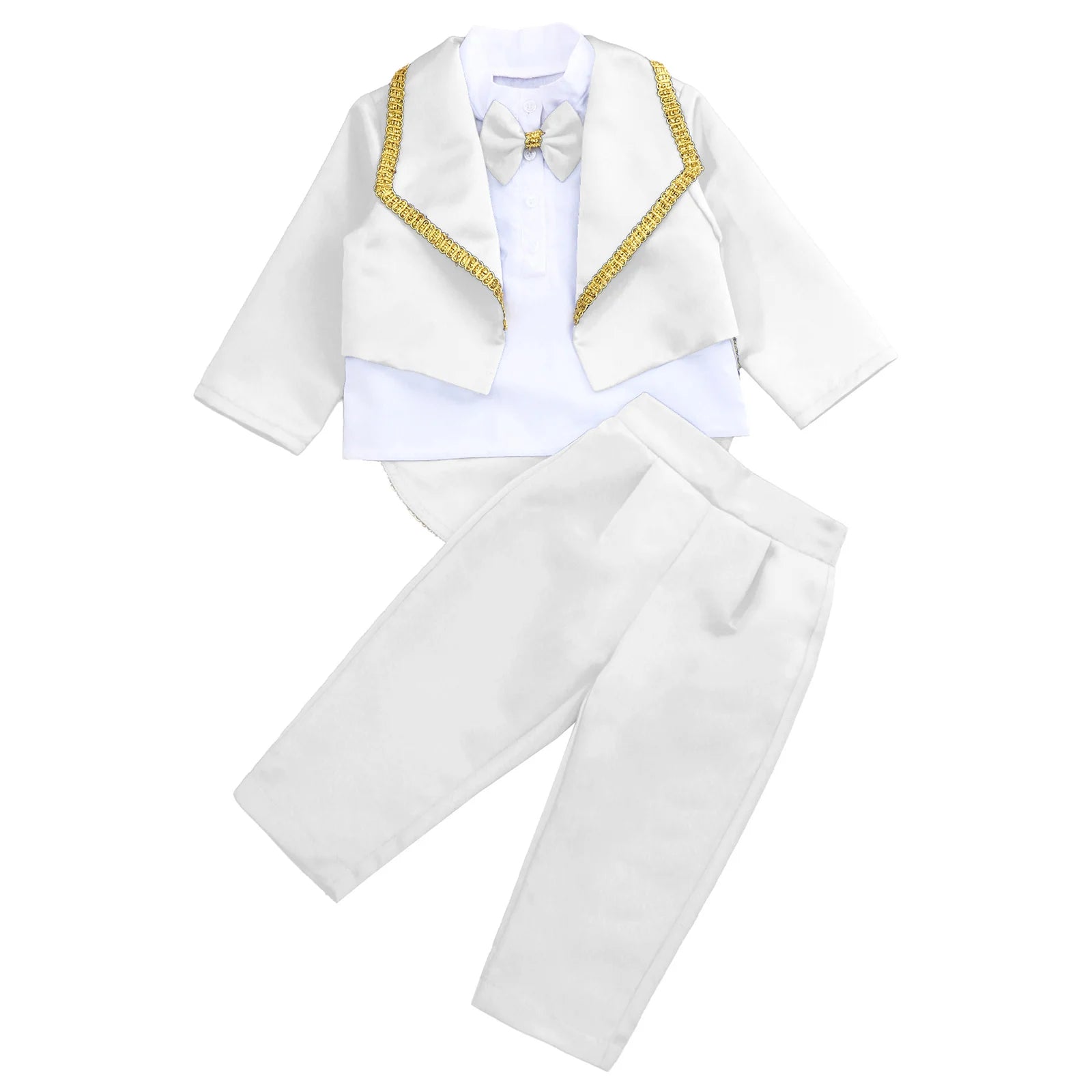 Toddler Baby Boys Formal Gentlemen Suit Long Sleeve Bowknot Tuxedo Tops with Pants Kids Wedding Party Banquet Christening Outfit