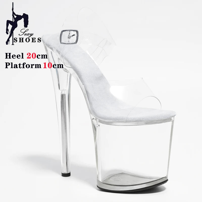 Transparent Crystal Women Sandals with Heels Pole Dancing T-show Model Stripper Shoes Party Club StilettosBride's Wed-ding Shoes