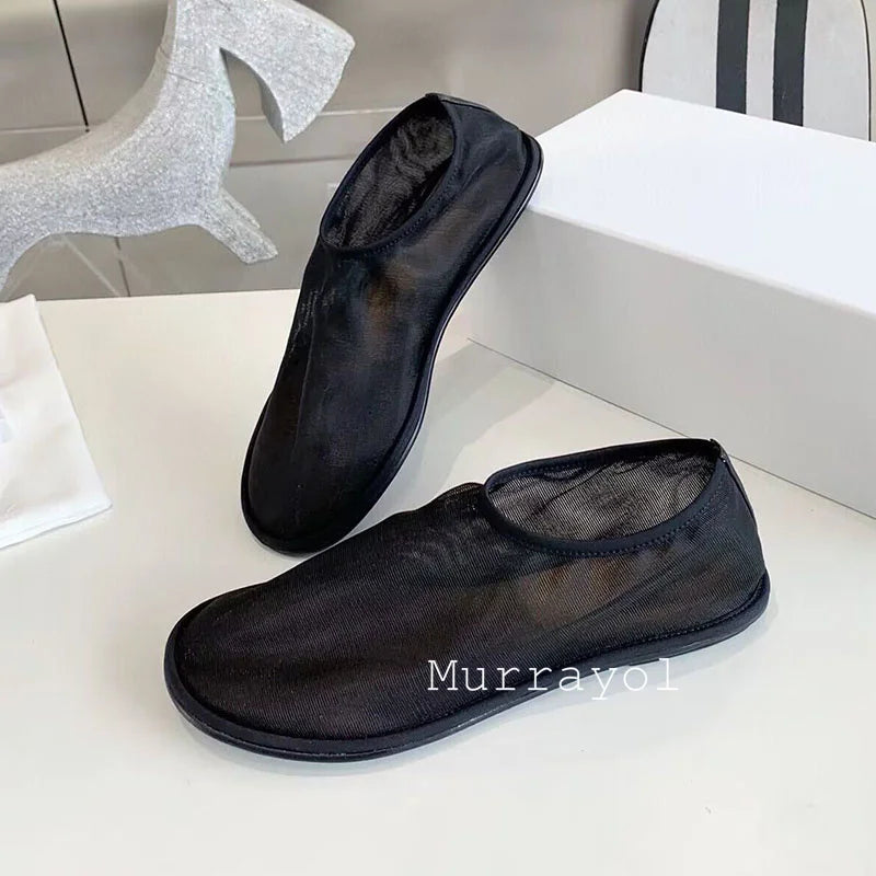 Transparent Mesh Net Flat Shoes Women Round Toe Deep Mouth Lazy Loafers Ladies Spring Summer Lightweight Commuter Walking Shoes